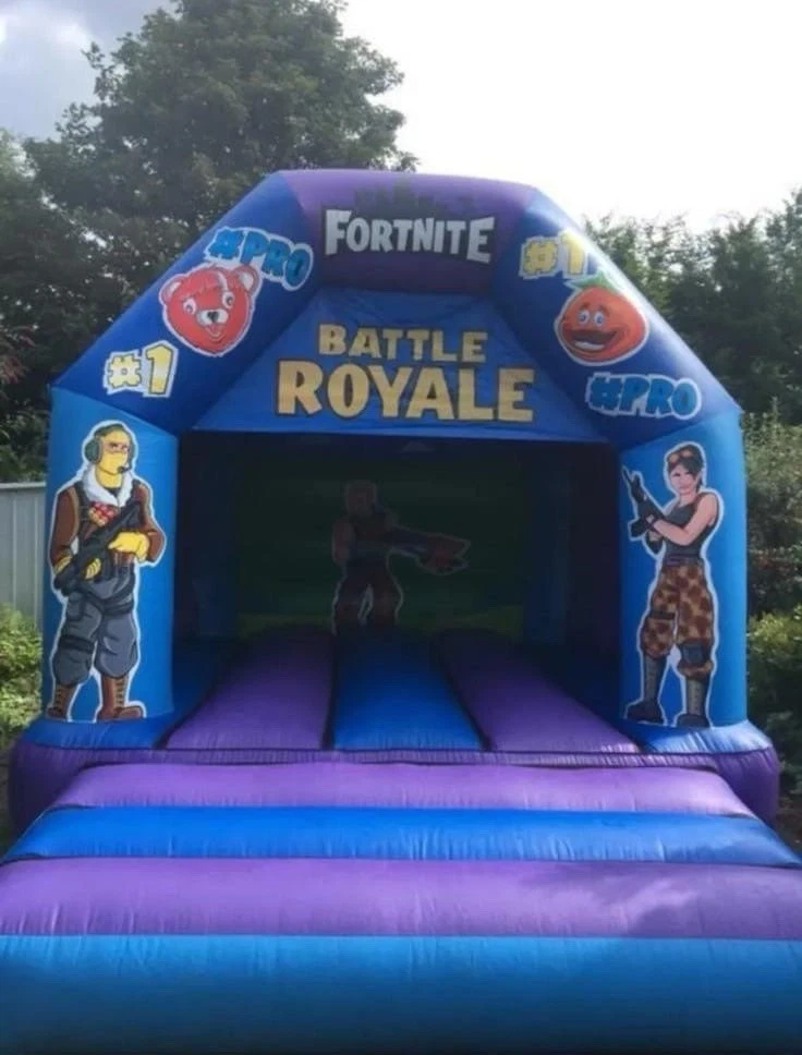 Bring the excitement of the battle royale to life with this Fortnite-themed bouncy castle, designed to deliver non-stop fun for kids and gaming fans alike. Featuring vibrant, high-impact graphics inspired by the world of Fortnite, this inflatable is guaranteed to be the centrepiece of any party, event, or celebration.